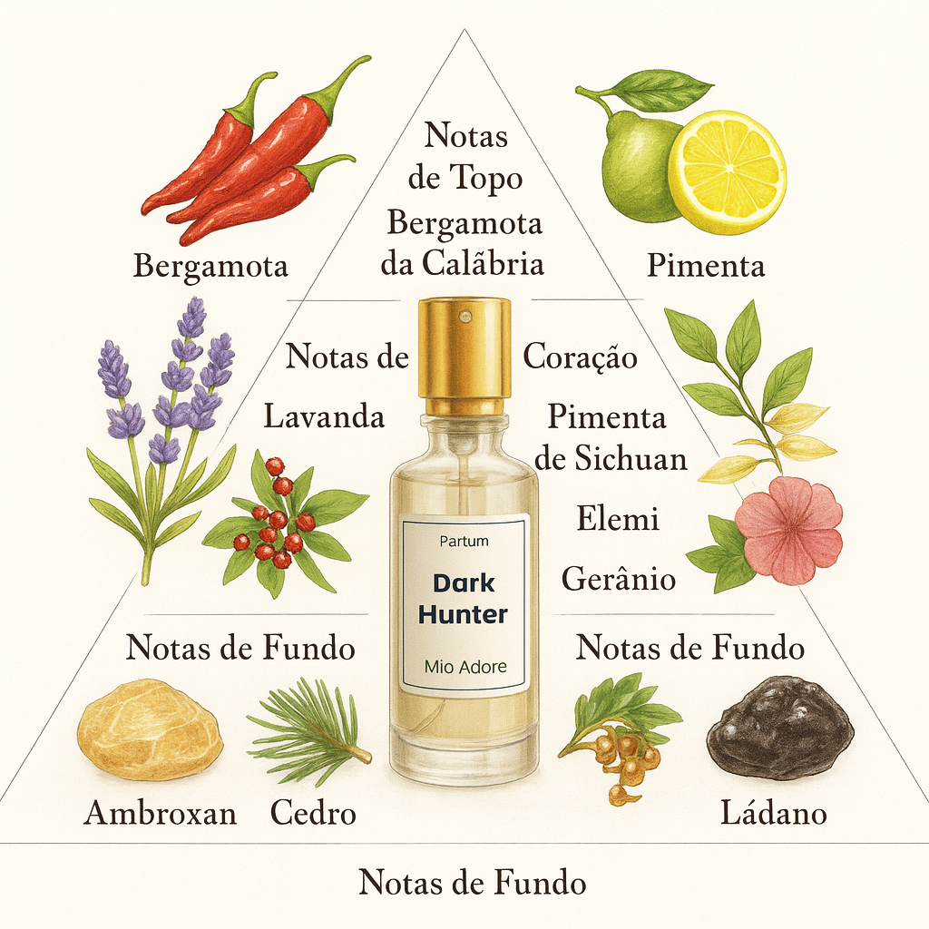 Dark Hunter é inspirado no icônico Sauvage (Dior), uma das fragrâncias masculinas mais marcantes da perfumaria moderna.