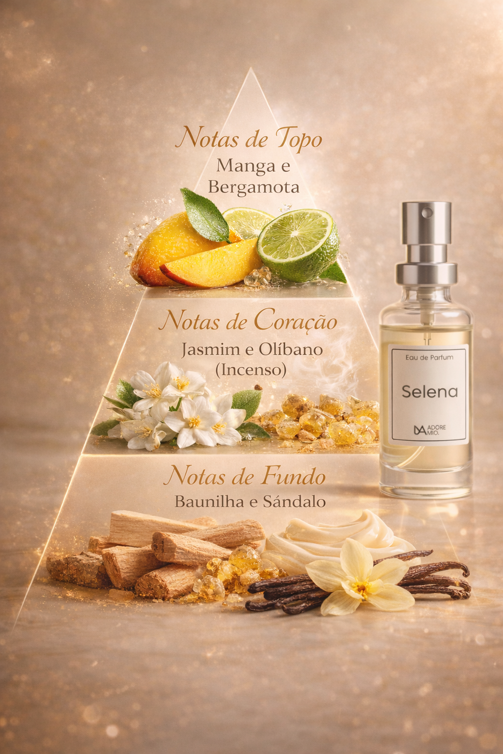 Selena é uma fragrância feminina moderna, envolvente e sofisticada, criada para mulheres que irradiam glamour, confiança e presença marcante. Inspirada em perfumes importados icônicos do universo fashion, sua composição combina notas frutadas tropicais com um coração floral luminoso e um fundo cremoso e sensual, resultando em um perfume elegante e altamente viciante.